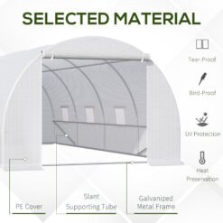 The spacious walk-in polytunnel greenhouse from Outsunny helps you create your very own indoor garden. Made from solid metal frame with PE cloth to protect your plants, fruits and vegetables against unsuitable weather. The green house for garden is created to provide desired temperature, humidity and sunlight to your plants. Roll up windows and zippered doors allow ease of access and optimum protection from birds and pests. Extend the planting time, enjoy the fun of planting for a long time.