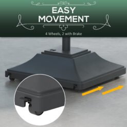 Keep parasol umbrellas firmly held in place: look to this Outsunny patio umbrella base. Made from strong HDPE plastic, this is durable piece, resistant to light wear-and-tear. It’s fitted with four wheels to roll easily when full. Fill with 45kg water or 60kg sand for plenty of weight. A powder coated steel pole for the parasol, complete with tightening screws to secure in place.