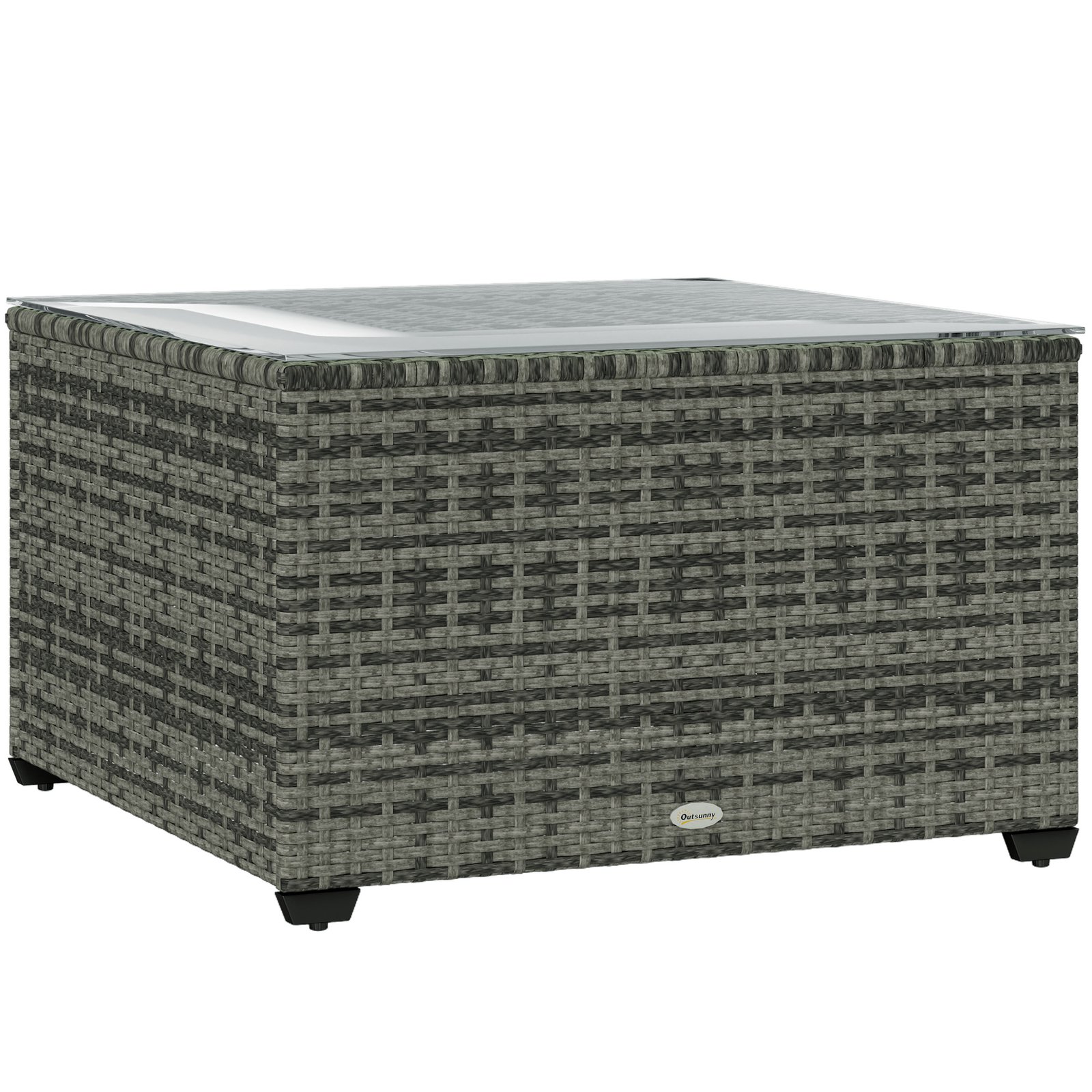 Forever style for your garden with this Outsunny rattan garden table. A galvanised steel frame with powder coating for a strong core structure; wrapped in tough plastic rattan, the garden side table effortlessly matches your current rattan garden furniture. It’s fitted with a 5mm thick tempered top for a sleek touch and a safe holding place. Complete with adjustable feet for stability.