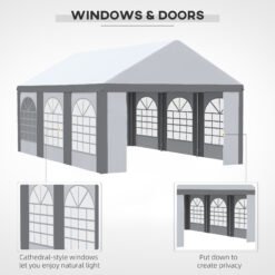 Outsunny 6 x 4m Galvanised Party Tent, Marquee Gazebo with Sides, Six Windows and Double Doors, for Parties, Wedding and Events