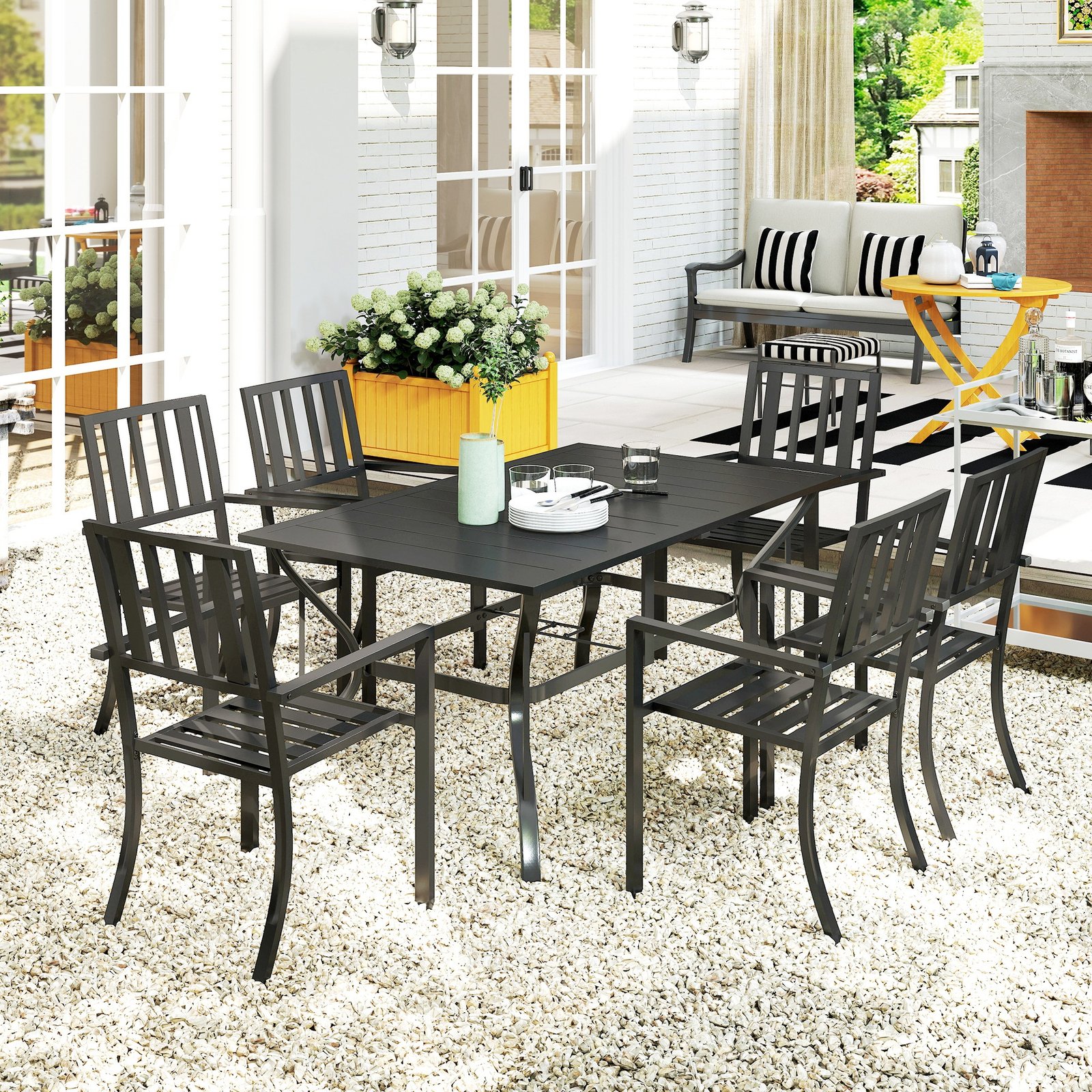 - Patio table and chairs are minimal in style: dress up or leave alone