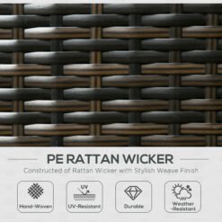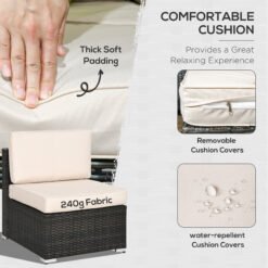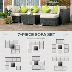 Make your garden stand out like never before. Say hello to this Outsunny garden corner sofa set. Each piece has a steel frame for strong support, wrapped in plastic wicker for double the durability; also creating a forever-stylish set for your outdoor space. Comes with two corner seats, four normal seats, a footstool and table – set up into a shape which you want. Padded cushions for comfort, with four coloured cushions for a touch of bold beauty.
