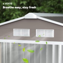 Keep your garden equipment and outdoor essentials locked away securely with this fantastic 185 x 127cm outdoor shed from Outsunny. Built from galvanised steel for enduring reliability, it is made with a lockable double sliding door on the front for easy access, four vents for air to circulate and prevent moisture build up, as well as a sloped roof so water doesnt build up and stagnate. Its finished with a protective weather coating and a floor foundation for it to stand level on the ground. The perfect home for all your outdoor tools and gear.