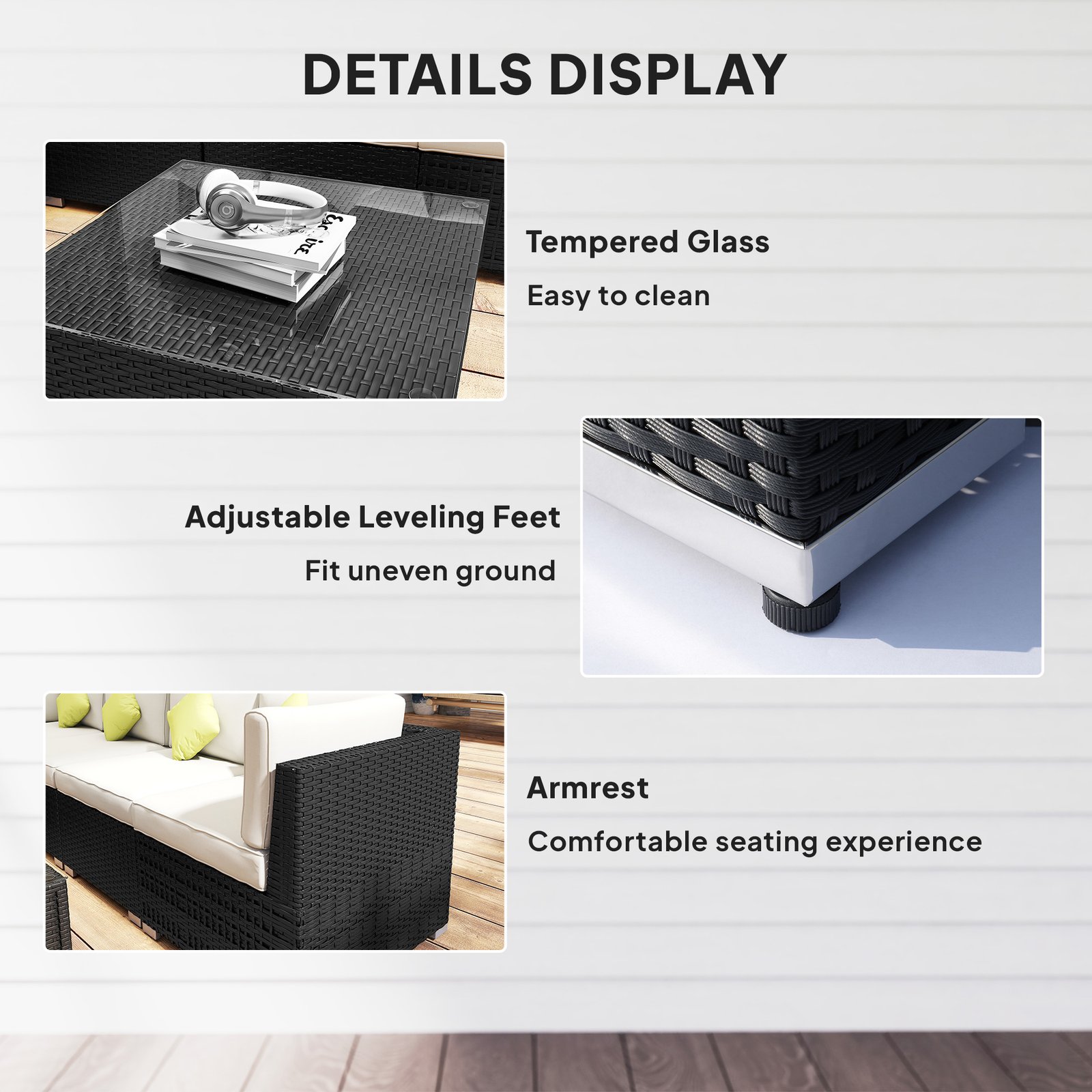 - Material Used: PE rattan, Aluminium frame, Tempered glass