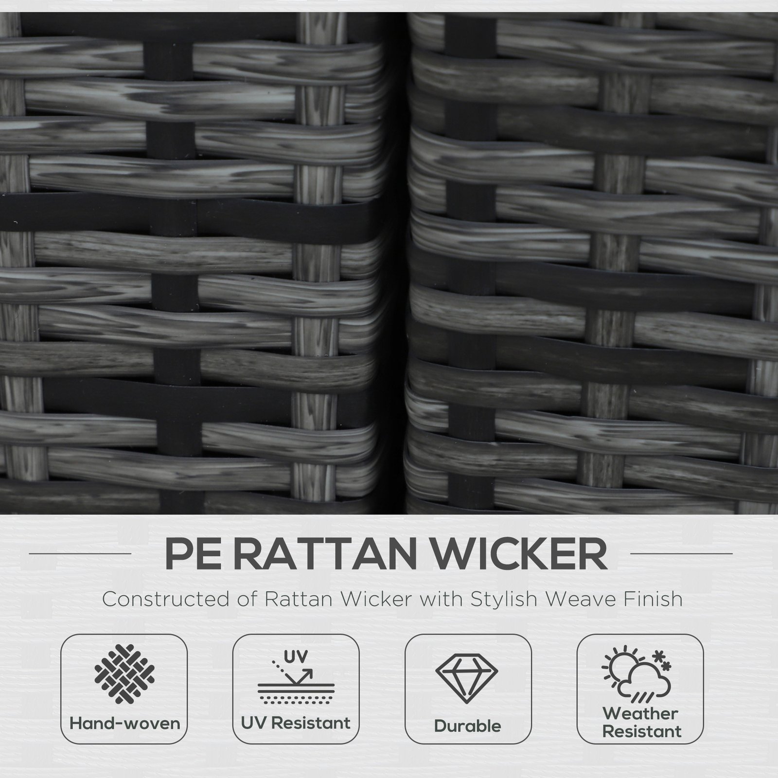 - Aluminium frame for a steady structure, with mixed-grey hand-woven rattan on top, allows each piece to be durable and tough against everyday wear and UV damage