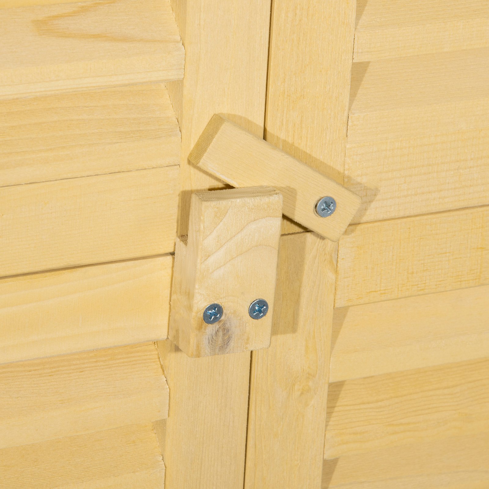 Give your gardening tools and outdoor essentials storage and organization with these outdoor wood sheds from Outsunny. We made sure to have plenty of space with three shelves at the bottom and a larger space on top. The slanted asphalt roof doesn’t allow for water to pool, while the material ensures no water seeps into the tool cabinet. The two wooden doors of the backyard storage have a wooden lock to secure your tools. Check out these storage sheds for outside, and get organized in your yard.