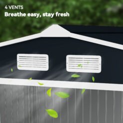 • Optimal Ventilation for Tool Preservation: Keep your tools in pristine condition with four strategically placed vents, ensuring a cool and airy environment inside the shed.