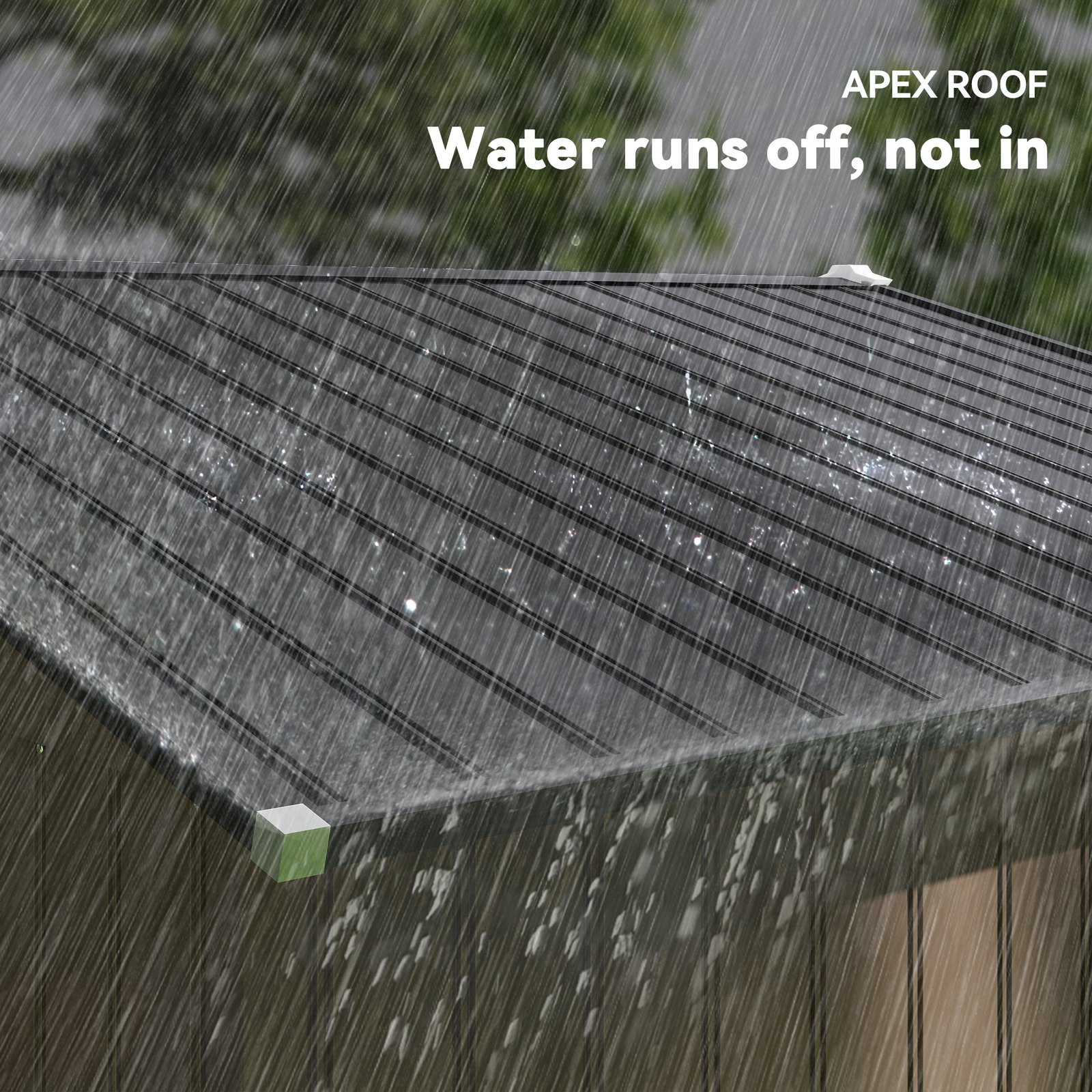 - Sloped roof helps prevent water build-up: prevents surface damage and rusting