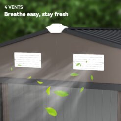 Keep your garden equipment and outdoor essentials locked away securely with this metal shed from Outsunny. Built from galvanised steel for strength, it comes with a lockable double sliding door on the front for easy access and four vents for air to circulate and prevent moisture buildup. The garden tool shed is finished with a protective weather coating and a foundation kit for it to stand level on the ground.