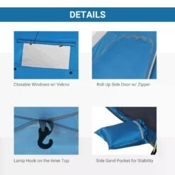 - Two mesh windows and two large open side ensure excellent ventilation, The 4 side sand pockets can be filled with sand to increase stability