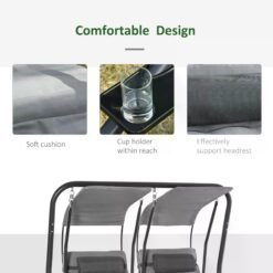Outsunny Canopy Swing 2 Separate Relax Chairs w/ Handrails and Removable Canopy Grey