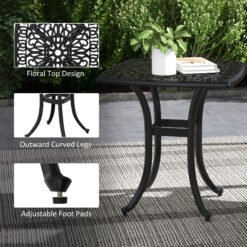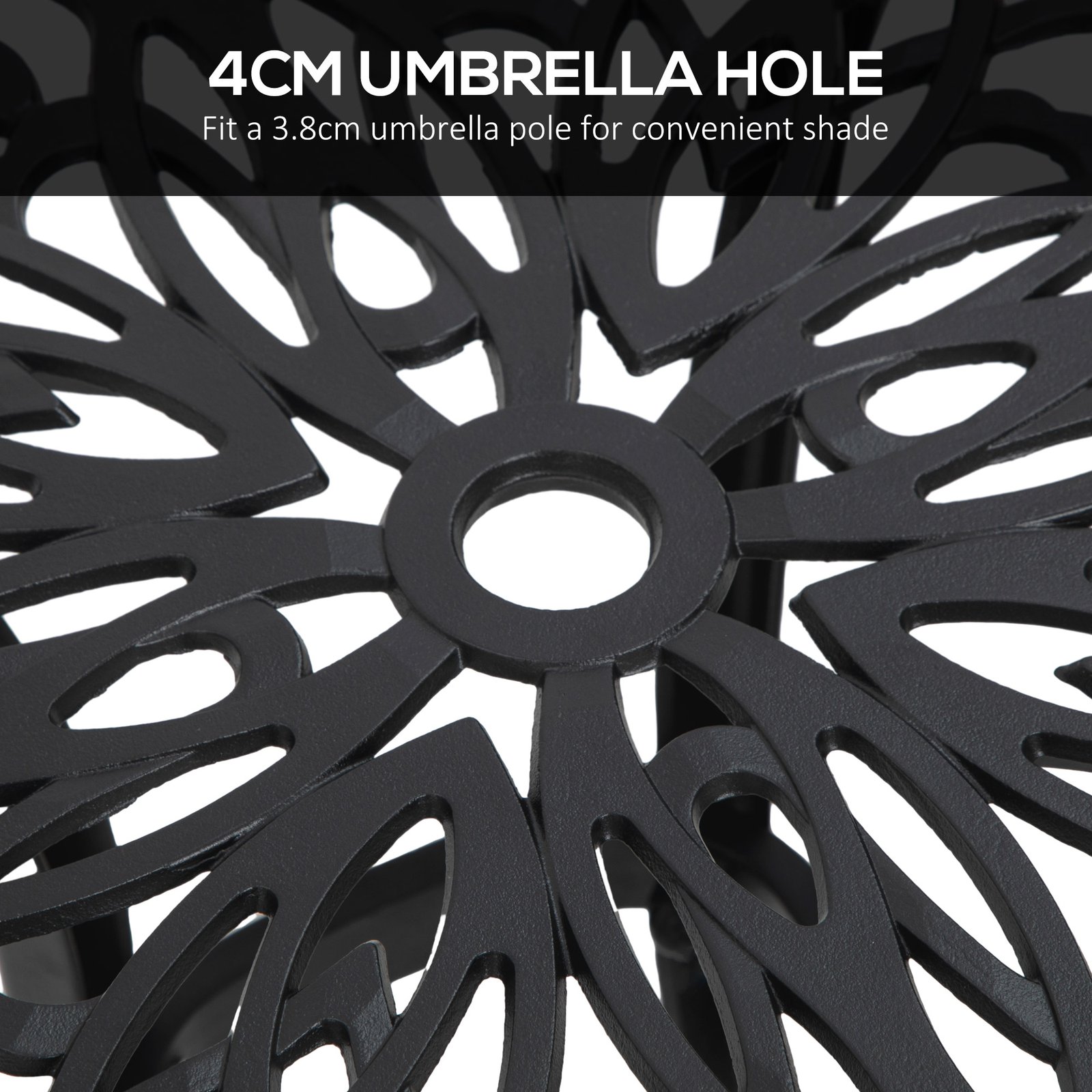 Enhance your outdoor with this Outsunny bistro table. Comes with a floral cut-out tabletop with curved legs for a beautiful design. Made from cast aluminium frame, with a powder coated finish, this is a strong outdoor coffee table suitable for year-round year. Comes with a Ф3.55 cm central hole to hold parasol in place.