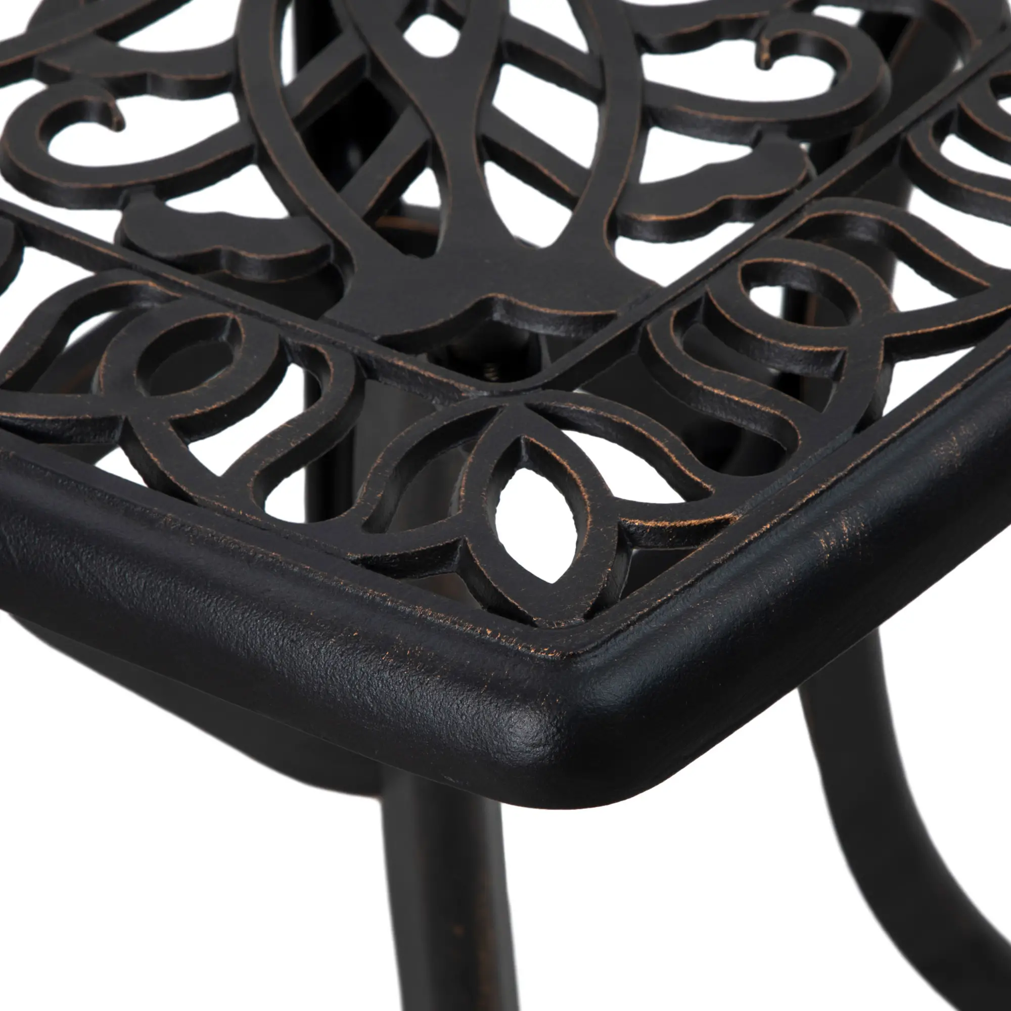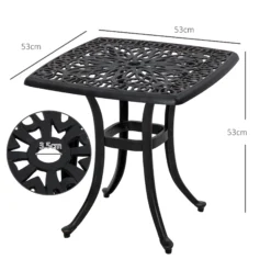 Enhance your outdoor with this Outsunny bistro table. Comes with a floral cut-out tabletop with curved legs for a beautiful design. Made from cast aluminium frame, with a powder coated finish, this is a strong outdoor coffee table suitable for year-round year. Comes with a Ф3.55 cm central hole to hold parasol in place.