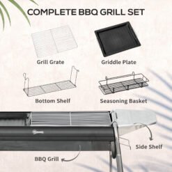• Convenient storage: Our portable BBQ features a seasoning basket with hooks, a side rack and a bottom shelf for fast seasoning and placing BBQ utensils, charcoal bags, etc.