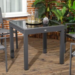Want a place to put on barbecues and cosy campfires? Like to read in the breeze? Need a table? Outsunny has a patio dining table to help you put on the picnic of your dreams. The robust aluminium frame with quality tempered glass table top is stable and easy to maintain. Also add enduring beauty, style and grace to your area with this essential part of any outdoor living space like the balcony, garden, or deck. Put some party into your patio with Outsunny.