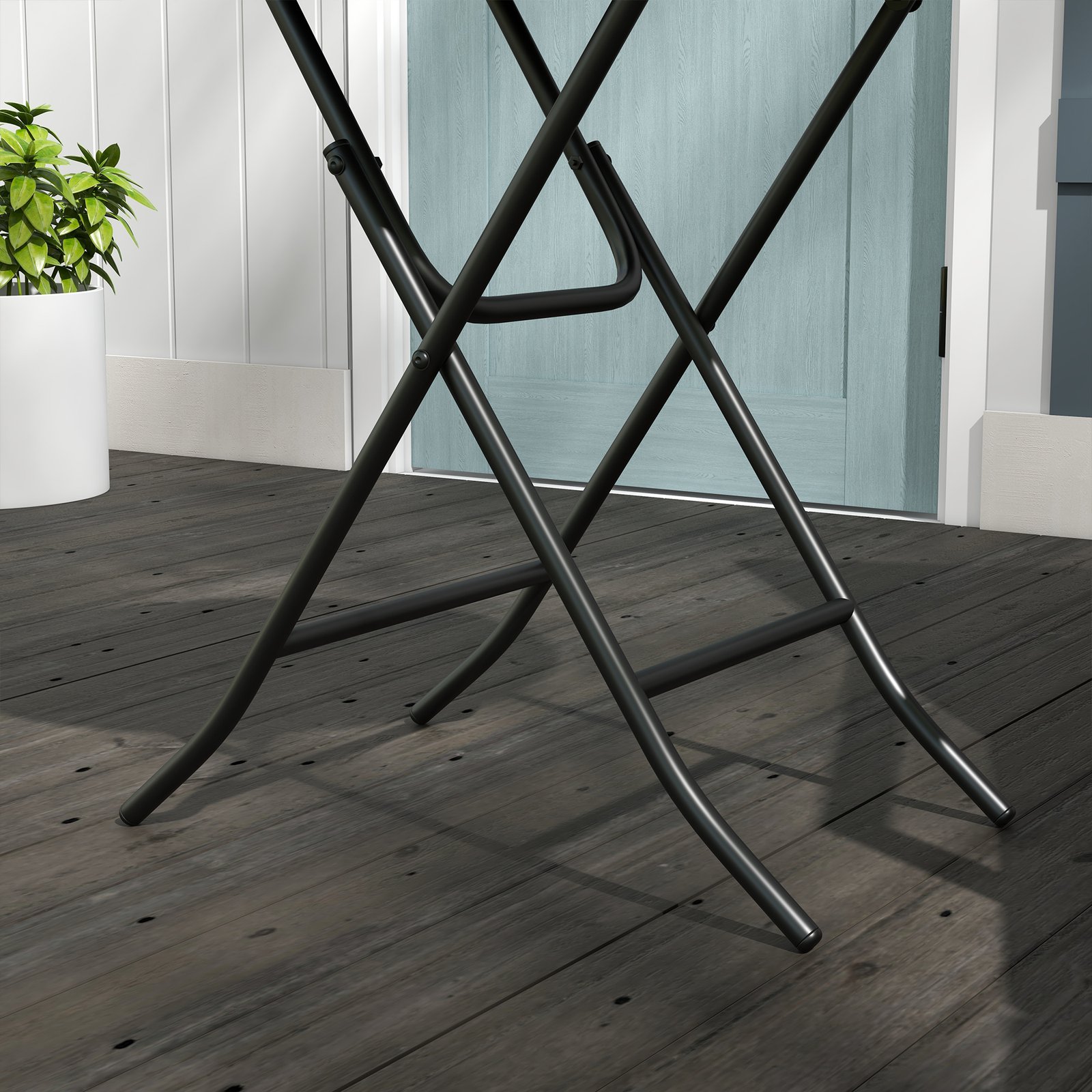 Extra table outdoors with this Outsunny side table. When not in use, the folding design makes it easy to carry and store away. The woven wicker tabletop is weather-resistant. A steel base for strong support. No assembly required – use straight from the box!