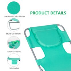 A cool update on the foldable sun lounger from Outsunny. Features a padded head hole at the front to allows you to rest your face in comfortably, which is perfect for relaxing or even reading a book! The powder coated steel frame is strong and solid to support up to 120 kg. The reclining backrest is five positions adjustable, easy to set and lock to a position you like best. Complete with a handy side pocket.