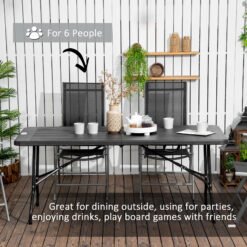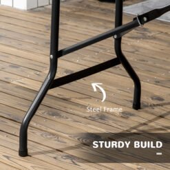 Pick a stylish addition for dining, afternoon tea and party on patios, decks with this folding garden table from Outsunny! The combination of steel frame and HDPE tabletop ensure reliable daily use. The table is a foldable structure, easy to carry anywhere you want and store in a corner when not in use for saving space. Add enduring beauty, style and grace to your garden with this essential part of any outdoor living space.