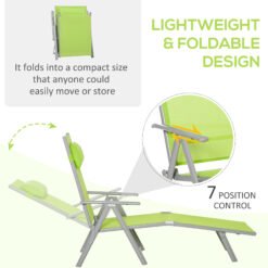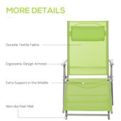 Relax easily all day long – thanks to this Outsunny garden lounger. The seven-level adjustable back means you can rest back to a position you want: whether shutting eye, reading a book or catching up with a friend. The metal frame is strong, with three long base legs for balance, wrapped in fabric to hold your body with full support. The removable top pillow keeps your head comfortable. When you’ve finished using it, this garden sun lounger is easy to fold up, carry and store.