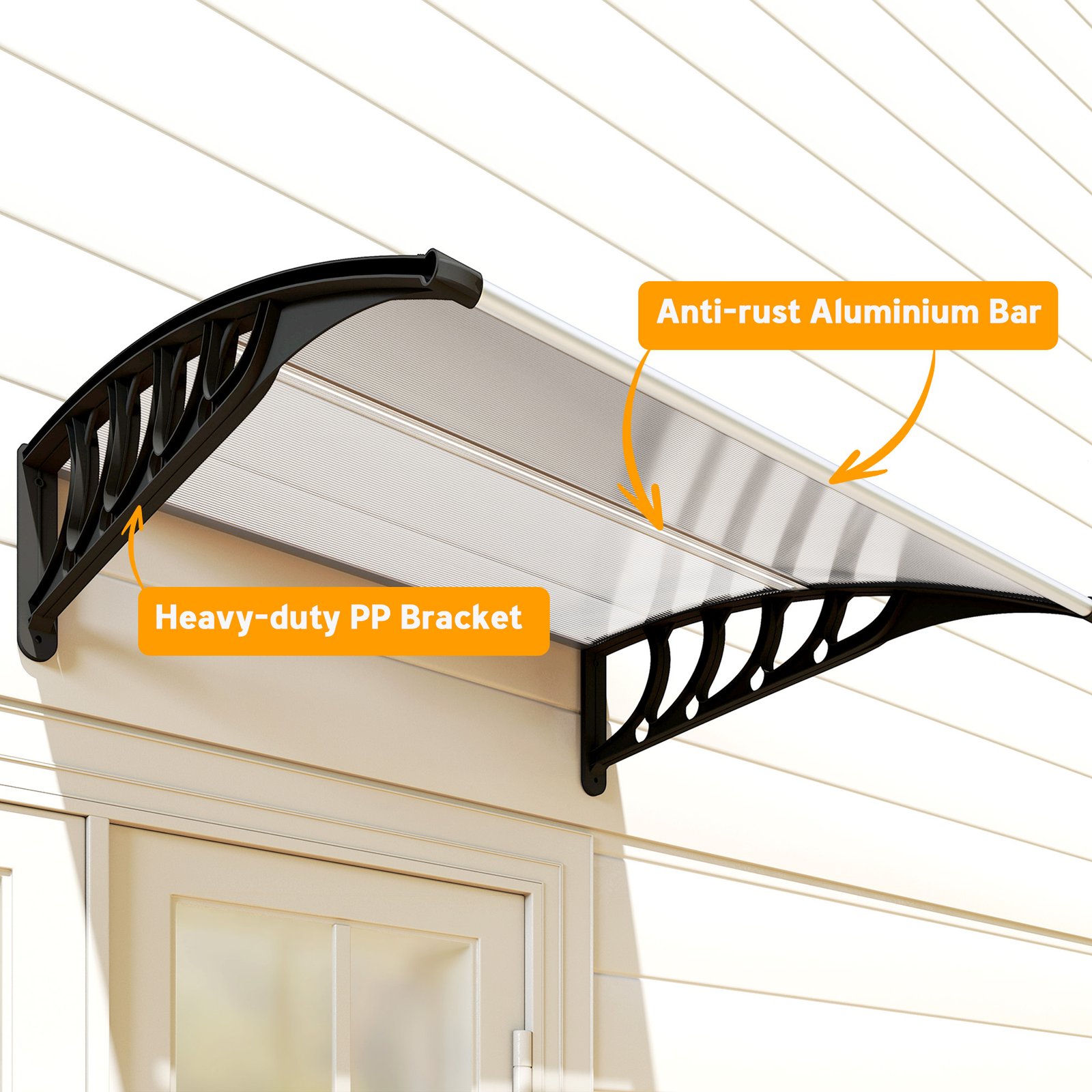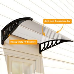 Keep the elements away from your doors and windows, all year long with this Outsunny door canopy. Curved shape covers a larger area, whilst preventing any build-up on the end half. The aluminium frame is strong so it holds on place; it can be easily mounted on the wall with all required accessories included in the package. Each panel features a UV-resistant coating for protection against damaging rays – whether it’s sunny, gentle snow, moderate breeze or light-medium rainy.