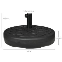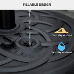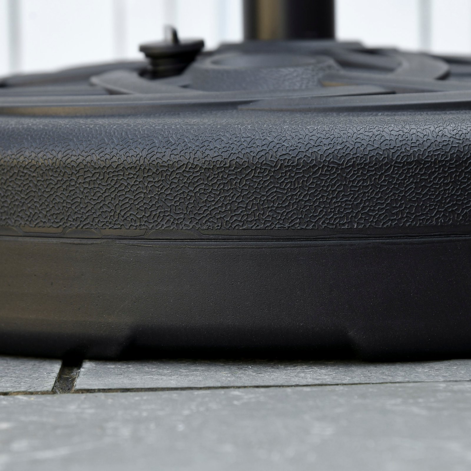 Ensure your parasol is always held firmly in place with this garden parasol base from Outsunny. Fill with water to weigh 25kg or sand for 35kg – or, mix both together for extra weight. The shell is made from plastic for a strong and durable structure. Features a filling port for easy fill and clean. Whether you wish to use this for the garden, patio or wherever else outdoors, this parasol will help you out.