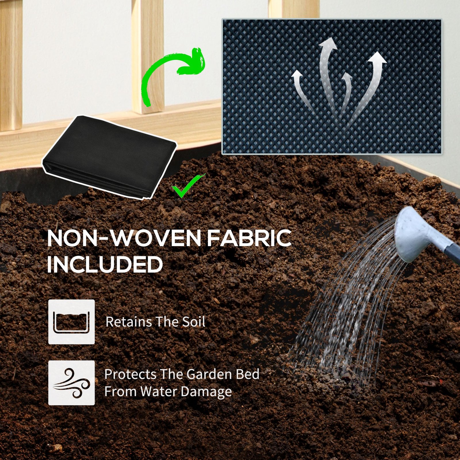 This Outsunny raised garden bed comes with a back trellis – grow plants, flowers, vegetables and let vines and more wrap themselves around the back. Wooden structure makes it strong, with a paint coating for gentle protection. Planter comes with fabric bag to hold the soil together, with two small holes for gentle water drainage.