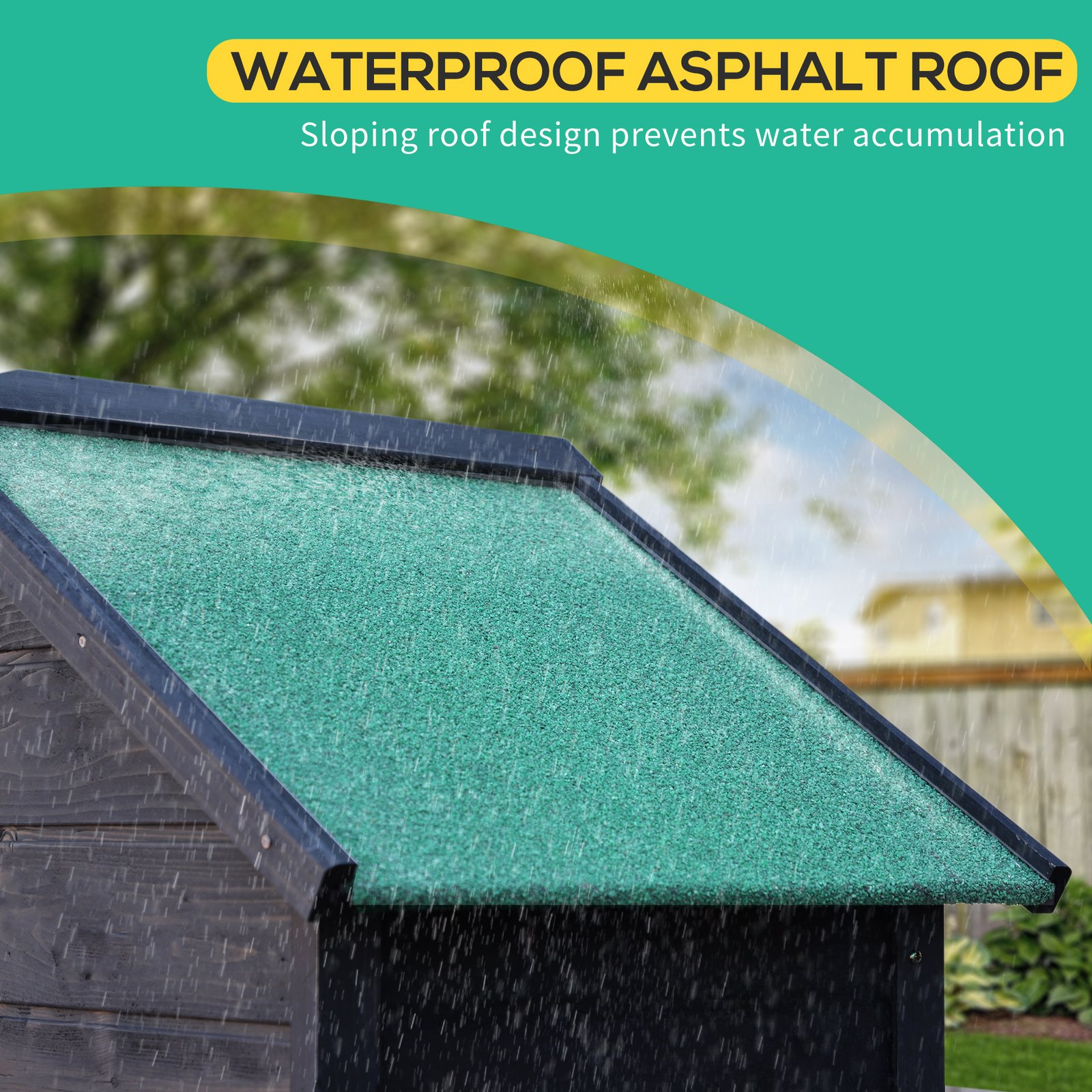 This Outsunny shed comes in a tall, slightly narrow design: a great storage piece for small garden and outdoor spaces. Inside, on the left, there are three shelves for easy organisation, with an open right side which caters for large and long pieces. Made from fir wood for a durable outdoor structure, it’s fitted with a sloped roof, so no water build-up. Ashapt covering on the roof to help prevent water entering inside. Complete with a latch on the two doors for security.
