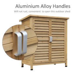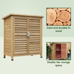 Outsunny Garden Shed Wooden Garden Storage Shed 2 Door Unit Solid Fir Wood Garage Tool Organisation Cabinet, 87L x 46.5W x 96.5Hcm, Natural
