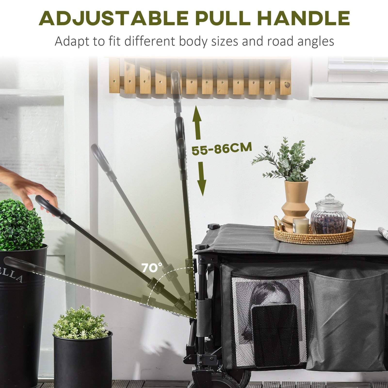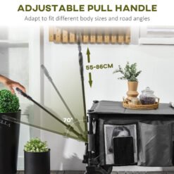 As a beach trolley cart, for festivals, or for general help around the garden and home, this Outsunny festival wagon helps with practically anything. Combining a folding steel frame for a strong structure, it’s fitted with a fabric bag to hold everything safely. Four wheels to move it around easily; brakes so it stands in place whenever you need. The adjustable handle means you can push and pull this trolley around whenever you want, complete with a top cover to protect inner contents safely.
