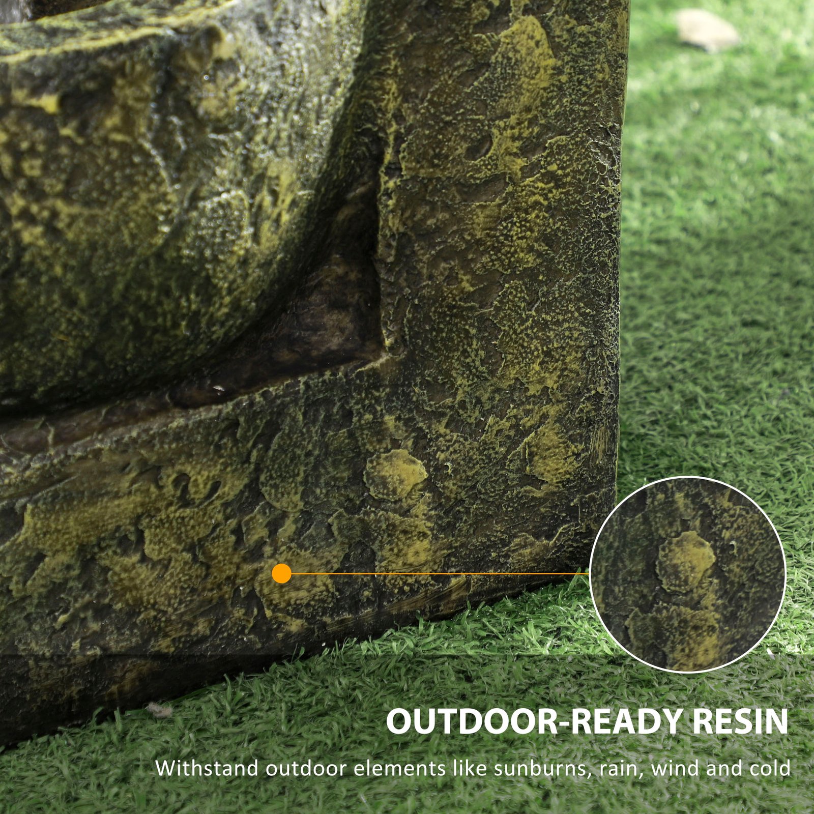 - Made of weather-resistant resin to withstand outdoor elements