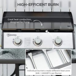 Outsunny Gas Plancha Barbecue Grill with 3 Stainless Steel Burner, 9kW, Portable Tabletop Gas BBQ with Non-Stick Griddle for Camping Picnic Garden Party Festival