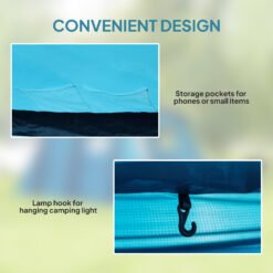 Discover the great outdoors with the Outsunny inflatable 6 man tent, your spacious escape for up to 6 people. Quick to set up with three TPU air beams, this blow up tent boasts a 210T polyester fabric for top-notch waterproofing and UV protection. Enjoy the comfort of separate living and sleeping areas and the convenience of a removable groundsheet, all packed into a light, easy-to-carry design.