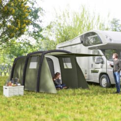 Discover the great outdoors with the Outsunny inflatable 6 man tent, your spacious escape for up to 6 people. Quick to set up with three TPU air beams, this blow up tent boasts a 210T polyester fabric for top-notch waterproofing and UV protection. Enjoy the comfort of separate living and sleeping areas and the convenience of a removable groundsheet, all packed into a light, easy-to-carry design.