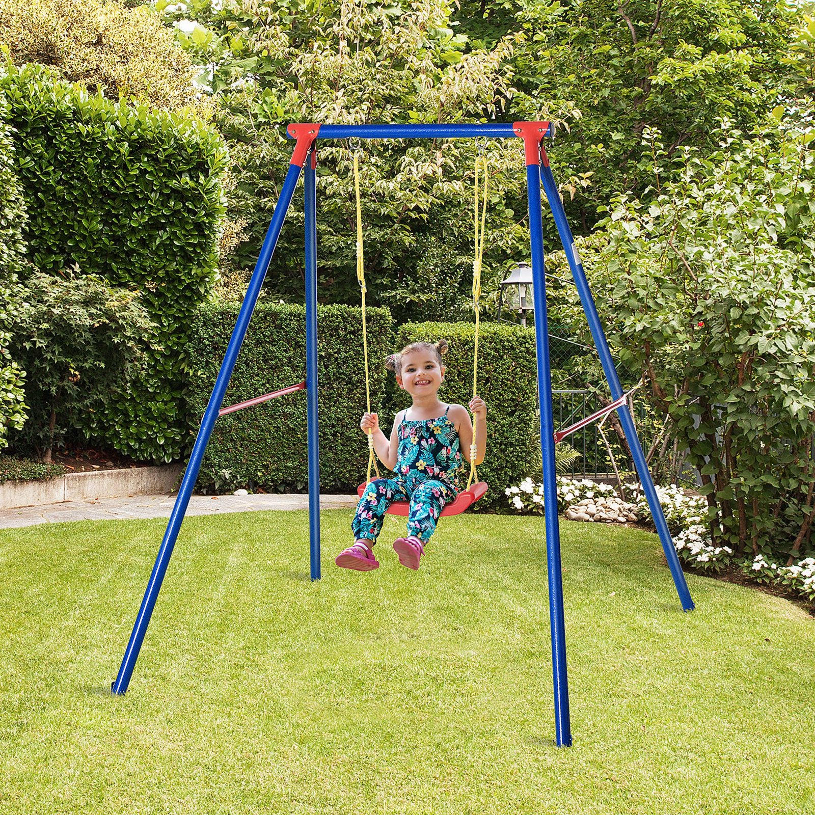 Give children an authentic playground experience, in the privacy of their own surroundings.This classic garden swing seat from Outsunny will let them enjoy hours of fun. Made from metal, with a powder coating for extra strength and durability, the frame is made into an ‘A’ shape so it stands balanced. The rope is adjustable to cater for different heights. It’s finished with a ‘U’ shaped seat so they can sit safely and comfortably. Recommended for ages 3-8 years.