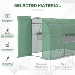 This Outsunny garden polytunnel greenhouse creates a safe growing environment for plants and more. A galvanised steel frame means a strong standing structure, with a hinged door for easy access inside. It’s fitted with a plastic cover – a safe shield for your plants inside. The two roll-up windows bring in fresh air whenever you want.