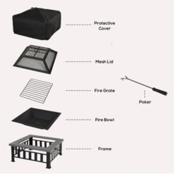 • SAFETY: Our fire pits for garden come with mesh lid to prevent burning embers blowing; included poker to stoke fire and remove the mesh lid