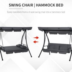 Make the most of the sunny days with this 2-in-1 convertible outdoor swing chair from Outsunny. Big enough to fit three people, 3 seater garden swing easily converts into a bed with an adjustable backrest to suit you and a canopy to protect you from hot sun. Garden swings for adults sit on a steel frame for stability and reliability. With two pillows supplied to provide even more comfort, there’s no better way to enjoy to sit down and relax as the sun shines on a hot summers day.