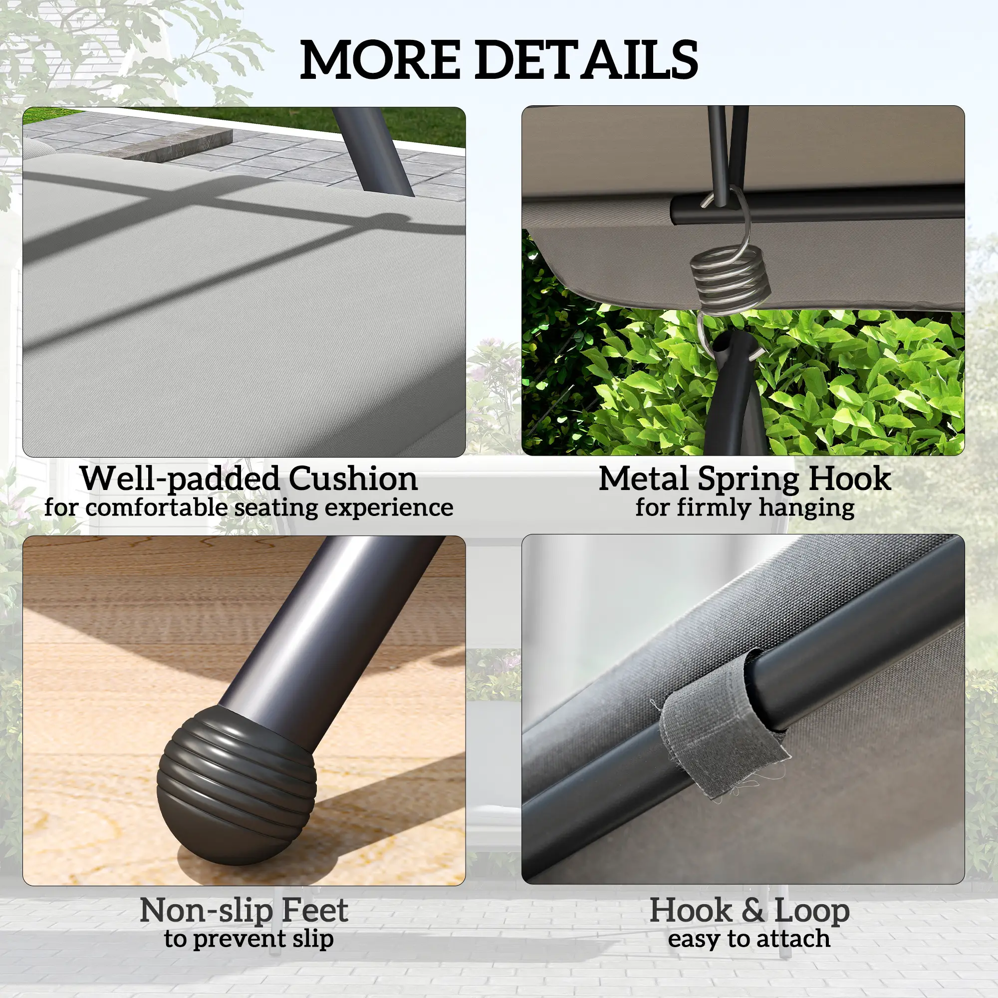 • Stable & robust: The swinging garden chair built with steel frame in powder coated finish and great spring hook, stable and robust.
