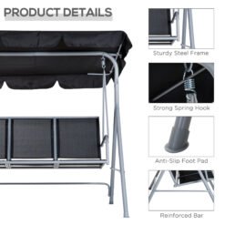 Outsunny Outdoor 3-Seater Swing Chair-Black