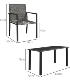 This Outsunny four-seater outdoor dining set is for every garden and patio. Four rattan-seated chairs and table is great for you and your favourite people to sit together. The glass-top of the table can be wiped clean quickly: a safe dining surface. Galvanised steel frames for strength. Plastic wicker woven into a rattan design: an on-trend garden look, for this season and beyond.