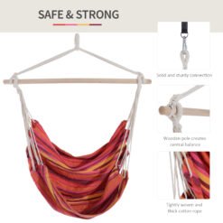 Sit back, relax and enjoy stylish outdoor lounging with the Outsunny’s hanging hammock chair! Made from the durable, breathable cotton material, it will offer you years of enjoyment. With wood stretcher thorough the swings chair to keep the chair stable! Relax outside and enjoy the fresh air with our garden swing hammock!