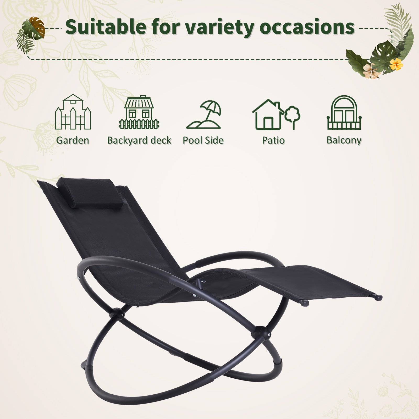 Bring a futuristic feel to your garden furniture with this orbital lounger from Outsunny. Made from powder-coated steel in a unique shape, this zero-gravity chair is ideal for relaxing for hours comfortably, allowing your weight to be evenly distributed and giving you all the support you need. Strong and sturdy, it features a breathable texteline cover and can be folded up to move and store easily. Finished with padding on the bottom and arms, this chair is perfect for relaxing in your garden or taking with you to the park, beach and more.