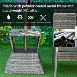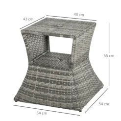 Bring a stylish feel to your coffee breaks with this rattan table from Outsunny. Made with weather-resistant PE wicker wrapped around a metal frame, this table has been built to withstand the weather, along with daily wear and tear to ensure it looks great for years to come. Easy to clean, it features a central hole to place a parasol umbrella, along with an open shelf in the middle to store your necessities when needed. It’s a great addition to your garden, patio, conservatory or balcony.
