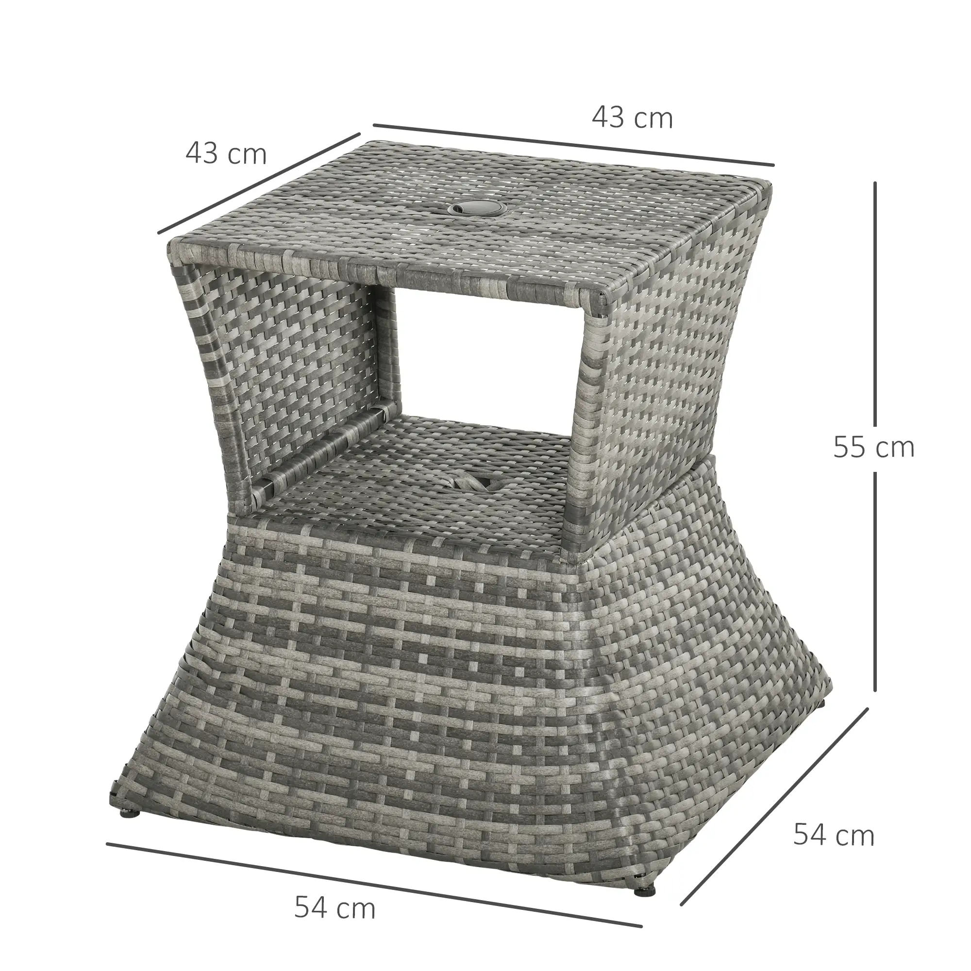 - Central hole for parasol umbrella (Suitable for 38mm umbrella diameter)
