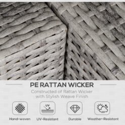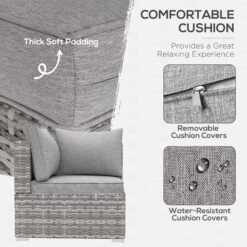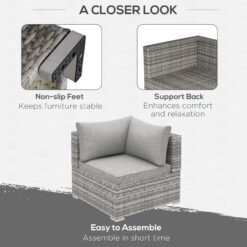 This modern rattan wicker corner sofa is must-have design from Outsunny. The core frame is made from galvanised metal, which is tough and rust-resistant for durability. It’s wrapped with PE wicker for extra durability and suitability for outdoor use. Comes with a padded seat and two thick cushions for comfort – covers are removable and washable for hygiene. A great way to unwind in a cute and cosy spot outdoors with the sun on your face.