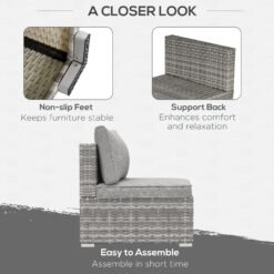 This modern and trendy outdoor patio furniture from Outsunny provides the user the unique reconfigurable design, offers exceptionally stunning outdoor relax and sit. This single armless chair made of PE rattan wicker and steel frame can be used alone or in combination. You can arrange the perfect shape to match your deck or garden. It is perfect for the pool side, deck or patio, its cushioned seat will let you and your guests to sit back, relax and enjoy the great outdoors.