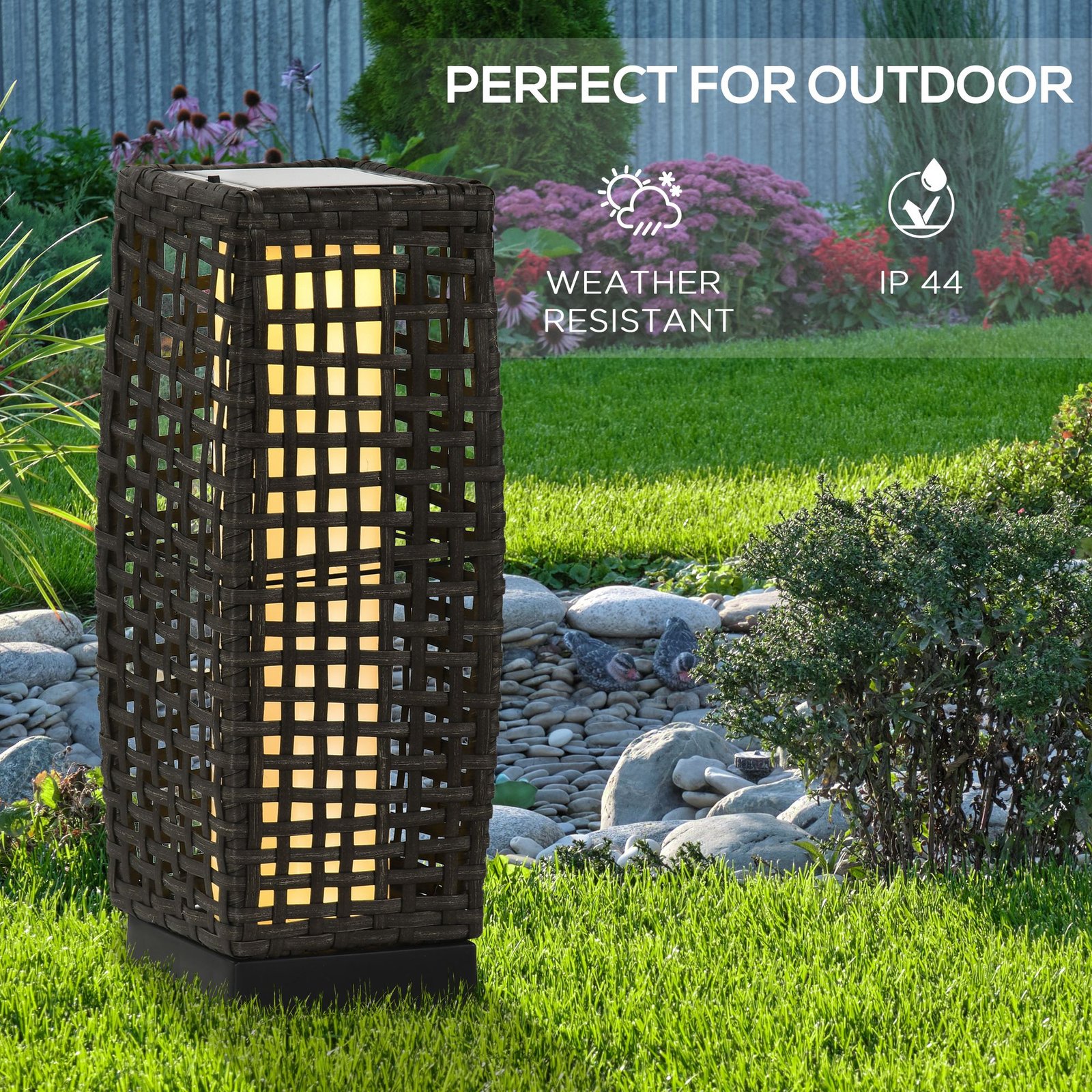 - Caged lantern design: tall and slim, with crossed wicker all over. Ideal for paths