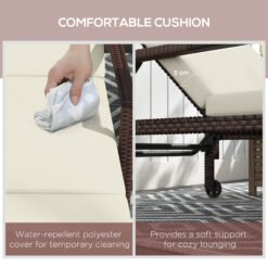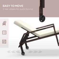 This Outsunny sun lounger is great for all-day relaxing. With a longline padded cushion and five-position back, this is a comfortable piece that can be customised to your choice. A metal frame for a strong core, wrapped in plastic wicker – protecting the metal whilst creating a stylish garden look. Complete with wheels to move around easily.