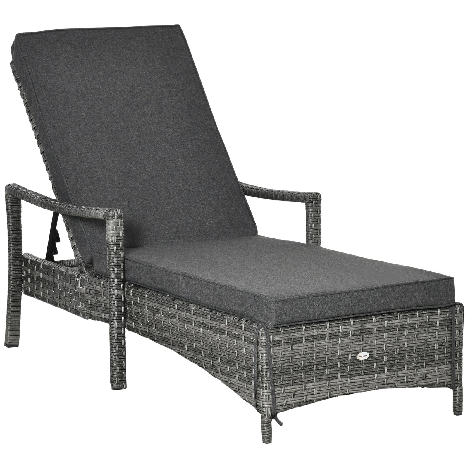 Outsunny Patio Rattan Sun Lounger, Dual Wicker Weave Outdoor Single Reclining Chair Furniture, 5-Level Adjustable Backrest w/ Removeable & Washable Cushion, Mixed Grey