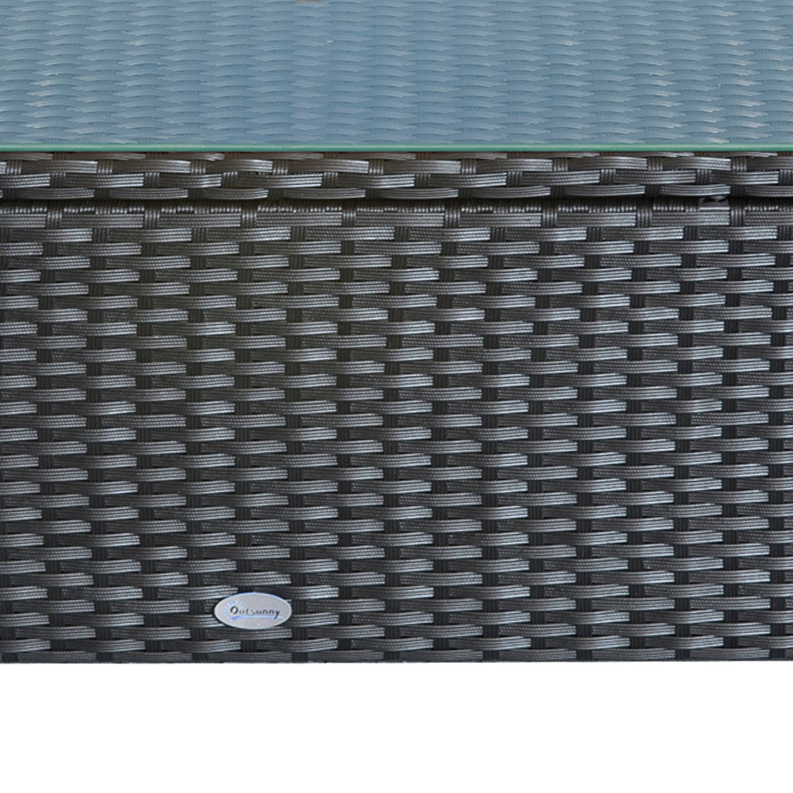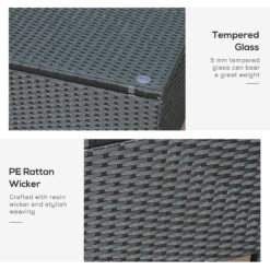 Outsunny PE Rattan Coffee Table, Rectangular Outdoor Coffee Table with Tempered Glass Top, 70 KG Capacity for Garden, Balcony, Terrace, Patio, Black